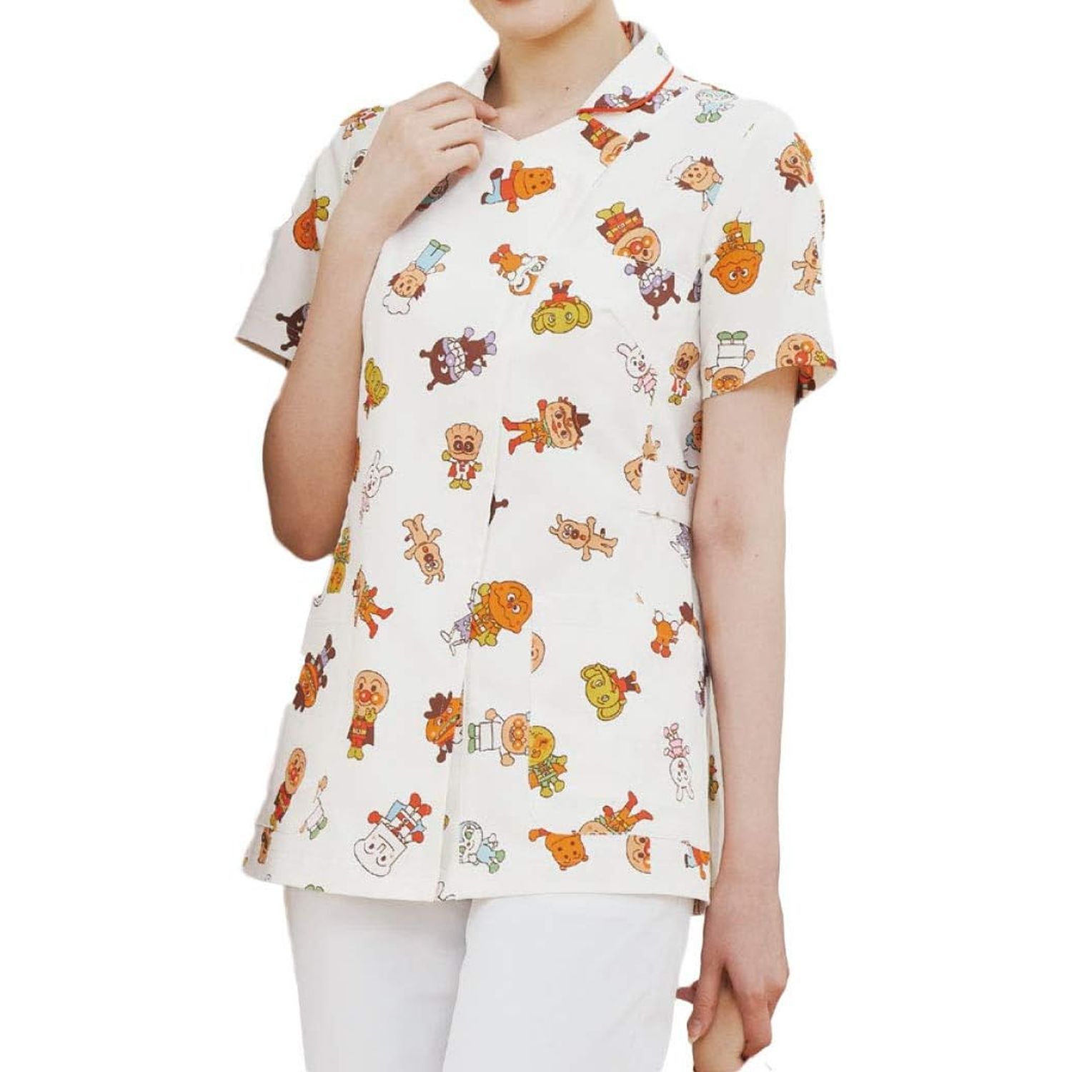 ●アンパンマンと仲間たちをランダムにちりばめた、衿付きのレディススクラブ。