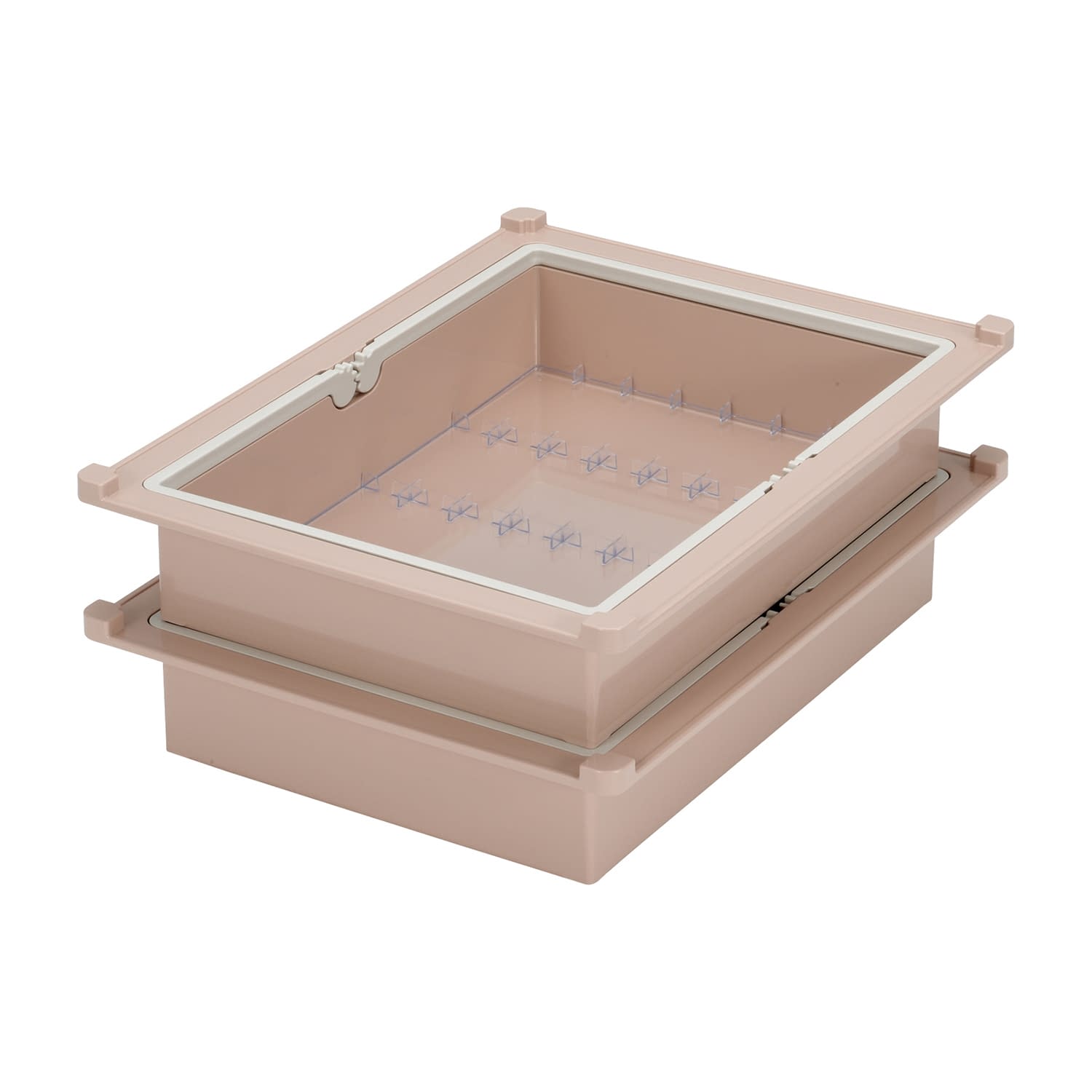 ●材質:本体(ピーチ・ブルー)=ABS(持続性帯電防止樹脂)、本体(透明)=ポリカーボネート、ハンドル=ABS(持続性帯電防止樹脂)、底板=ポリスチレン樹脂