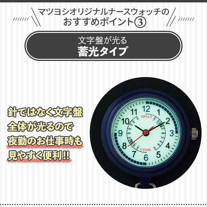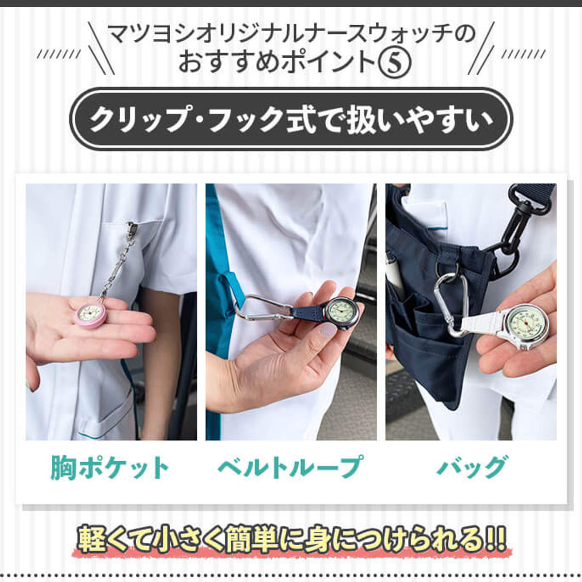 マイスコクリップ式蓄光ナースウォッチ 時計 24-7032-00 マツヨシ(松吉医科器械) MY-NS0420W(ホワイト)
