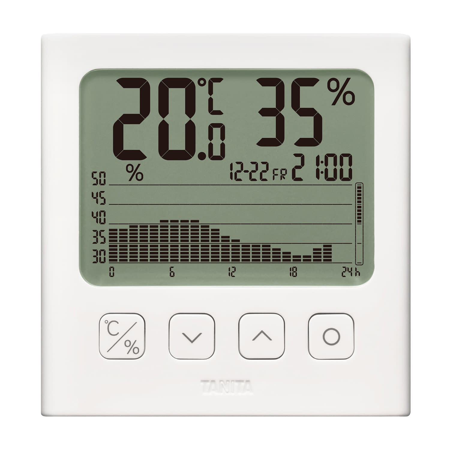 ●24時間の温湿度変化がわかるグラフ付きデジタル温湿度計。