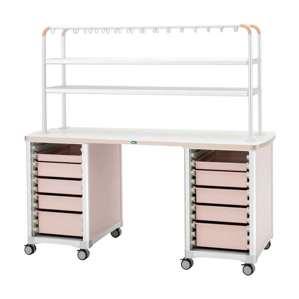 作業台(ハンガーシェルフ2段) 点滴処置台 24-8016-0001 トレー:ピーチ サカセ化学工業 WT-1805B-4(ホンタイ:ピーチ