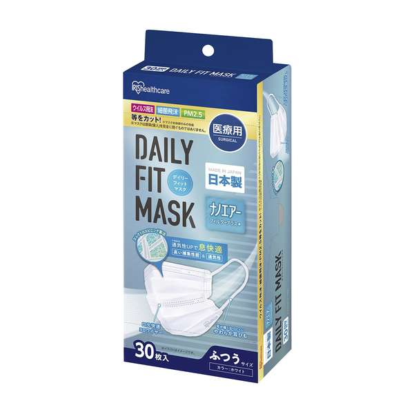 医療ナノエアーフィルタープラスマスク ふつうサイズ サージカルマスク 25-3691-00 アイリスオーヤマ SPN-DNI30L(30マイ)フツウ
