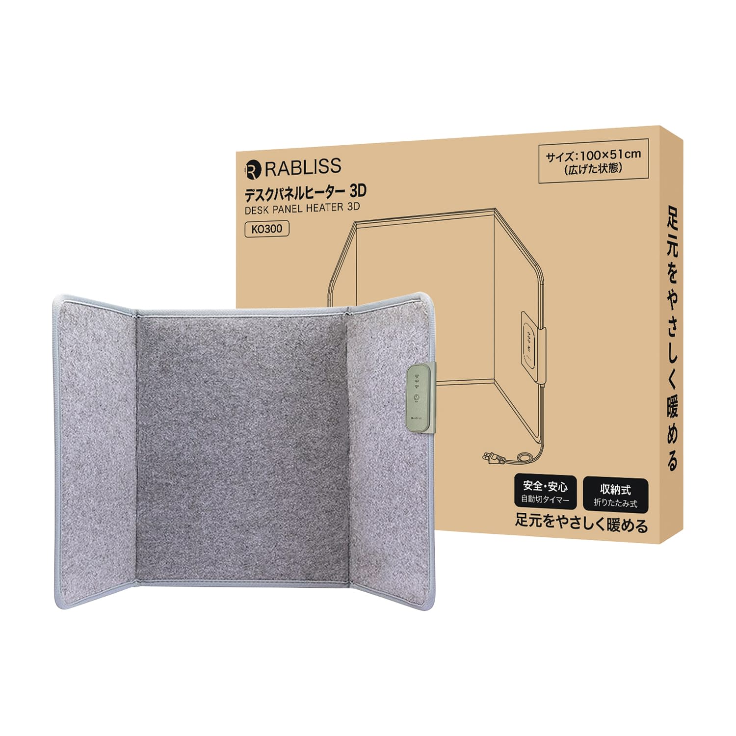 パネルヒーター デスクヒーター 25-6608-00 RABLISS(小林薬品) KO300(グレー)