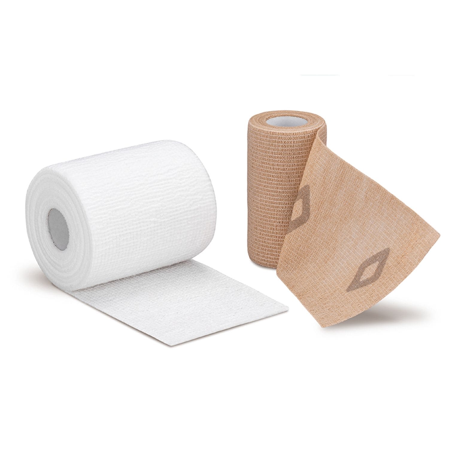 ●異なる伸縮性と自着性をもった2層の包帯で、安定した圧迫圧を維持する自着性包帯キット。