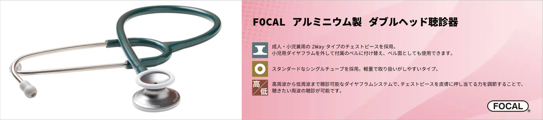 FOCAL アルミニウム製 ダブルヘッド聴診器
