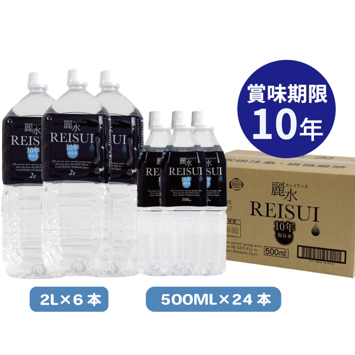 10年保存可能な蝦夷富士の湧水です。 湧水を空気に触れさせずに加熱殺菌・紫外線殺菌を行い、満水充填とシュリンクラッピングで長期保存が可能になりました。