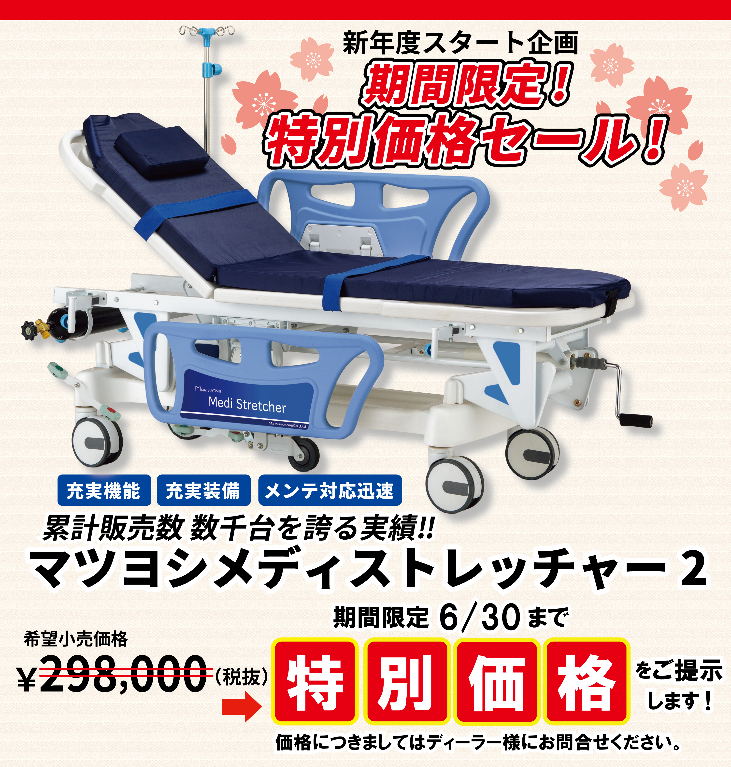 充実した機能と装備を備えた マツヨシメディストレッチャー2 を、6月30日(火)までの期間限定特別希望小売価格※にてご提供中です!